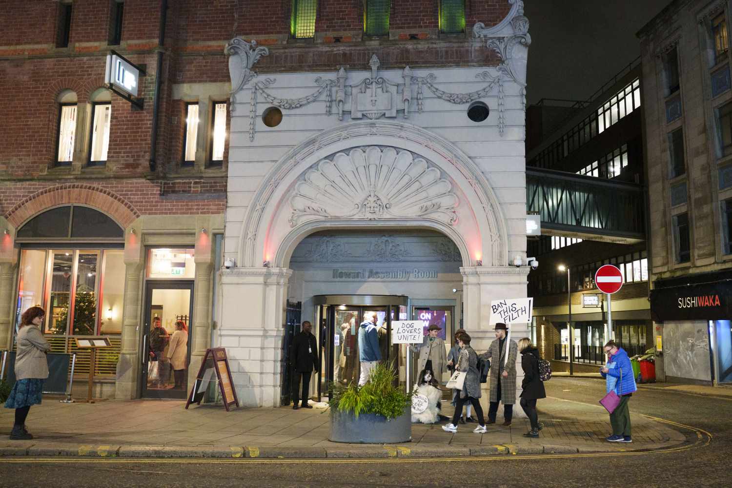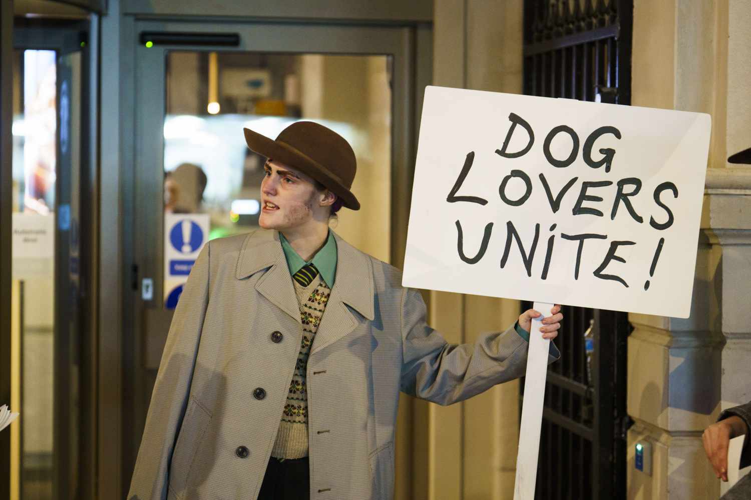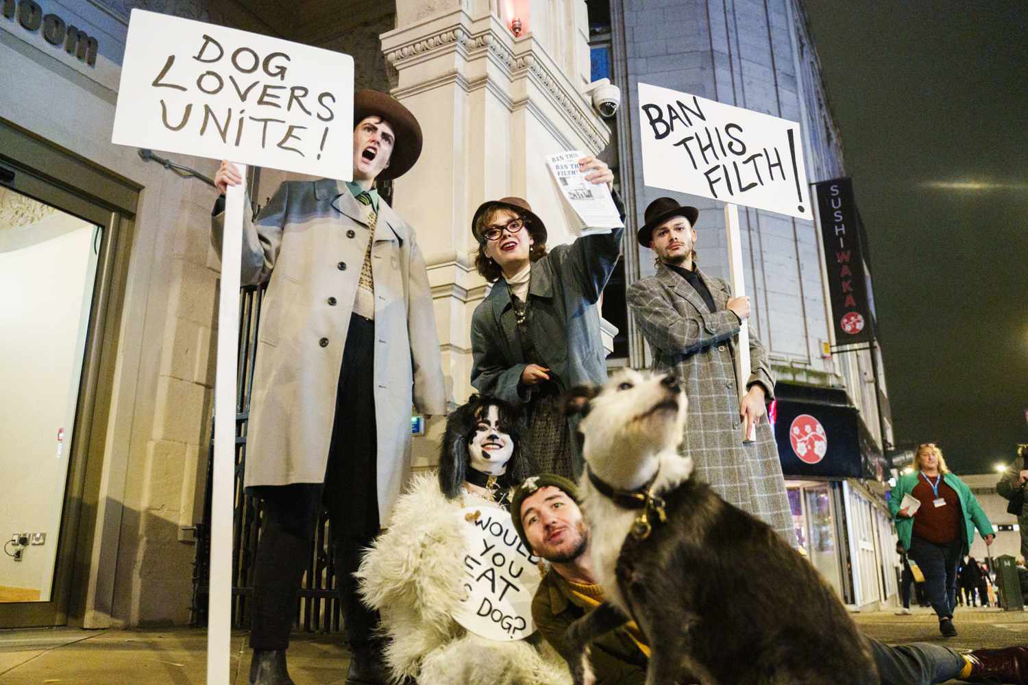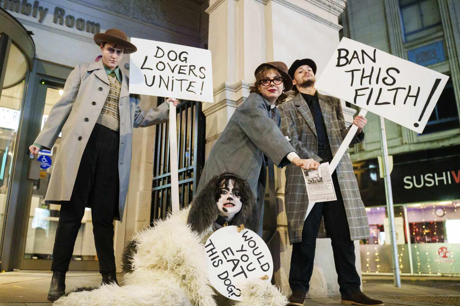 The performance was a re-enactment of a real animal rights protest that happened outside The Plaza (now Howard Assembly Room) in the 1960s.